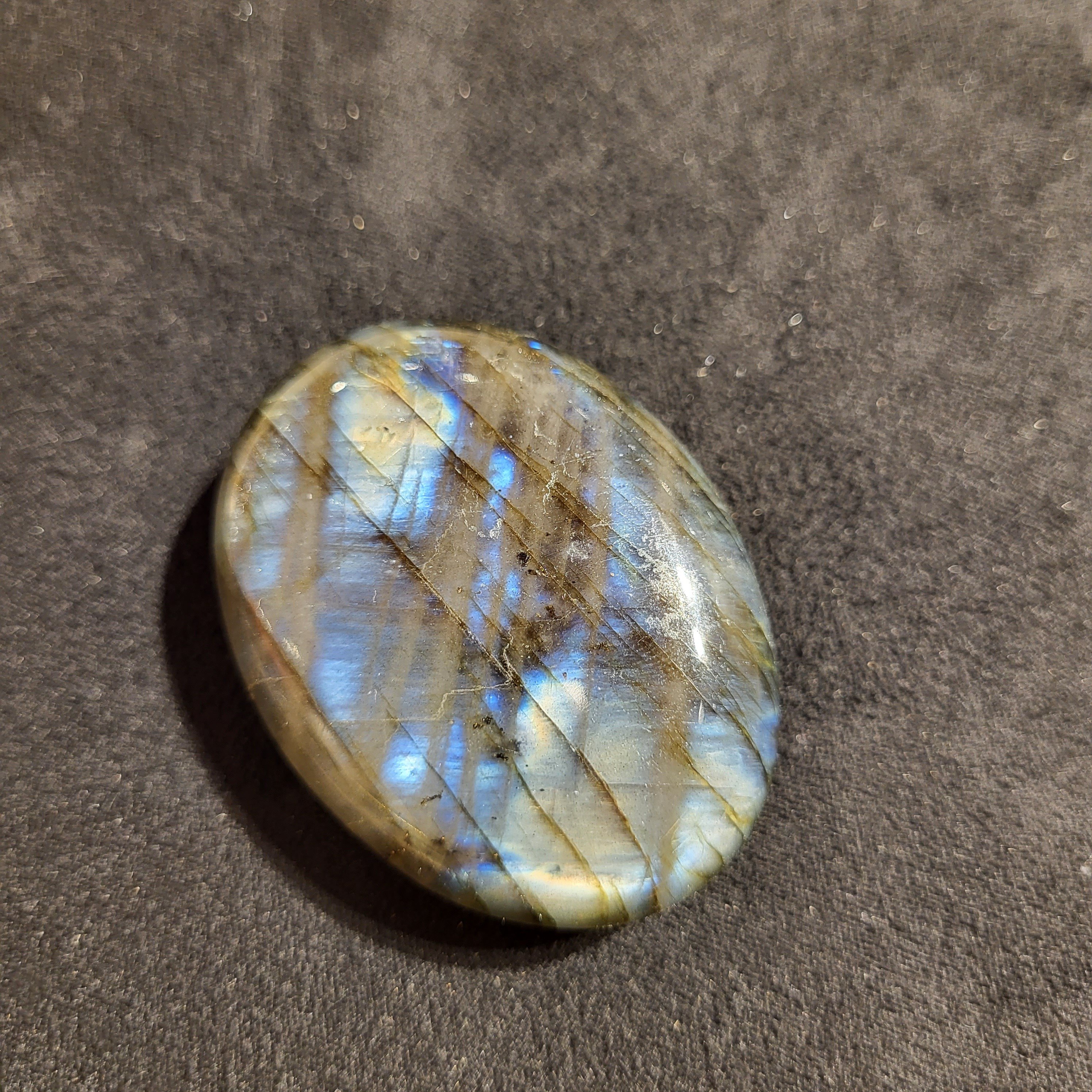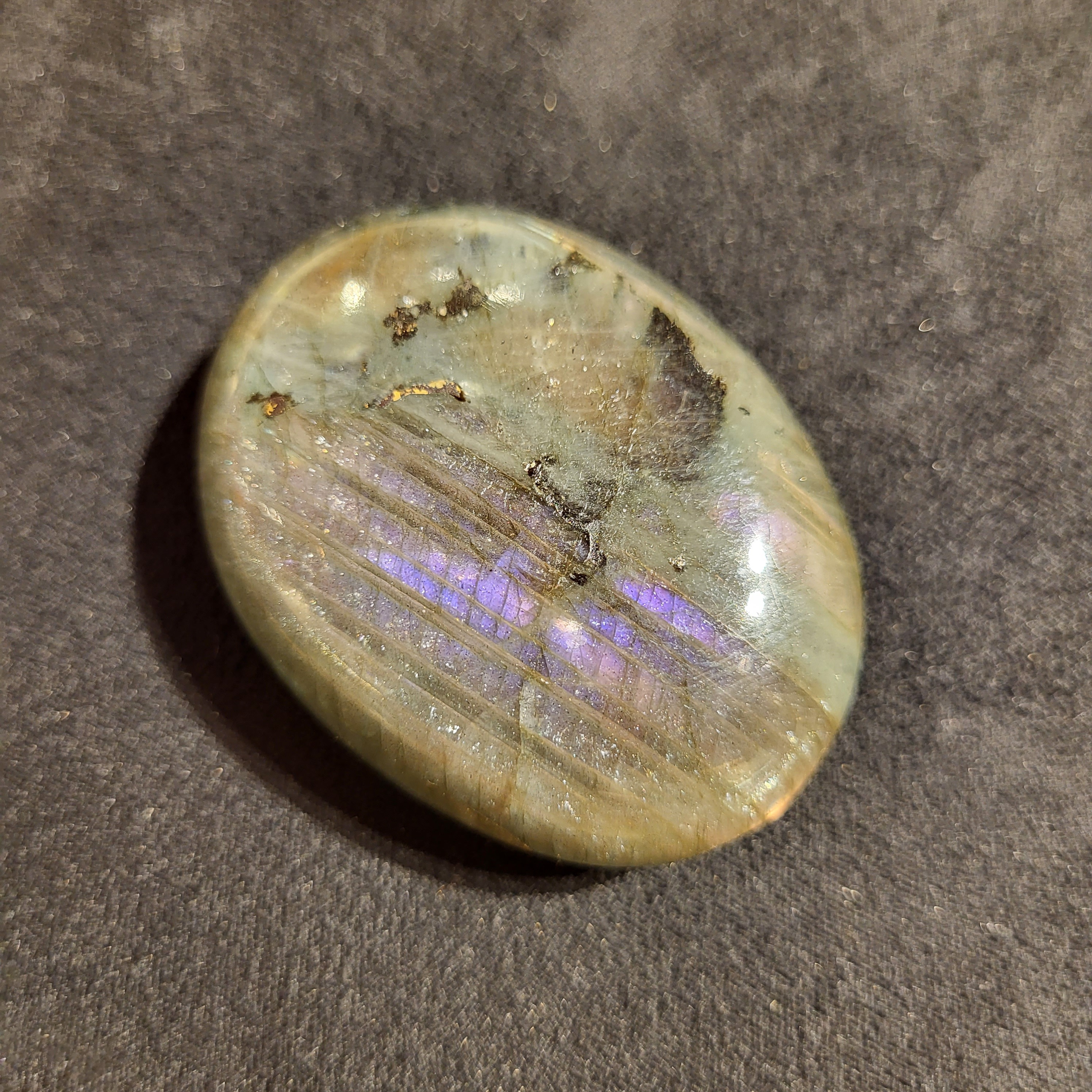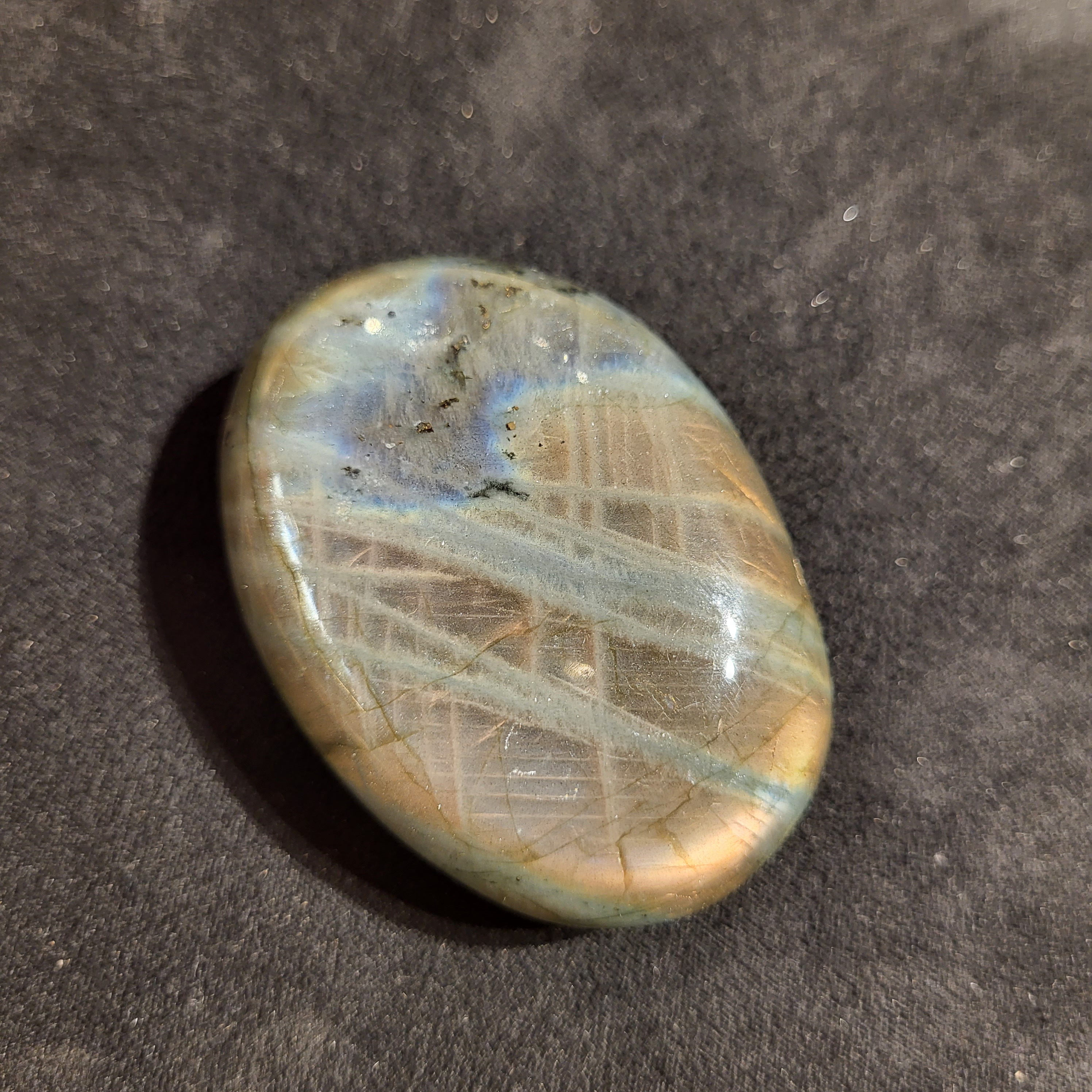 《拉長石Palm Stone》 當人比較迷失,又常感到疲倦時,最適合佩上拉長石。 提升動力,恢復體力,減少疲勞感 💁🏼♀️拉長石Palm Stone功效; ⭐拉長石沉穩、堅定、長波長的能量特性,對於容易疲勞、經常體力不濟者,有助於加強生命力,增進體力、耐力 ⭐有助於在不知不覺中補充體力,不易疲勞 ⭐有助於提高周身頻率,加強對事物的透視力、洞察力,免於被事物的表象所迷惑 ⭐尋找靈魂伴侶,守護愛情 ⭐清理負面情緒,幫助睡眠