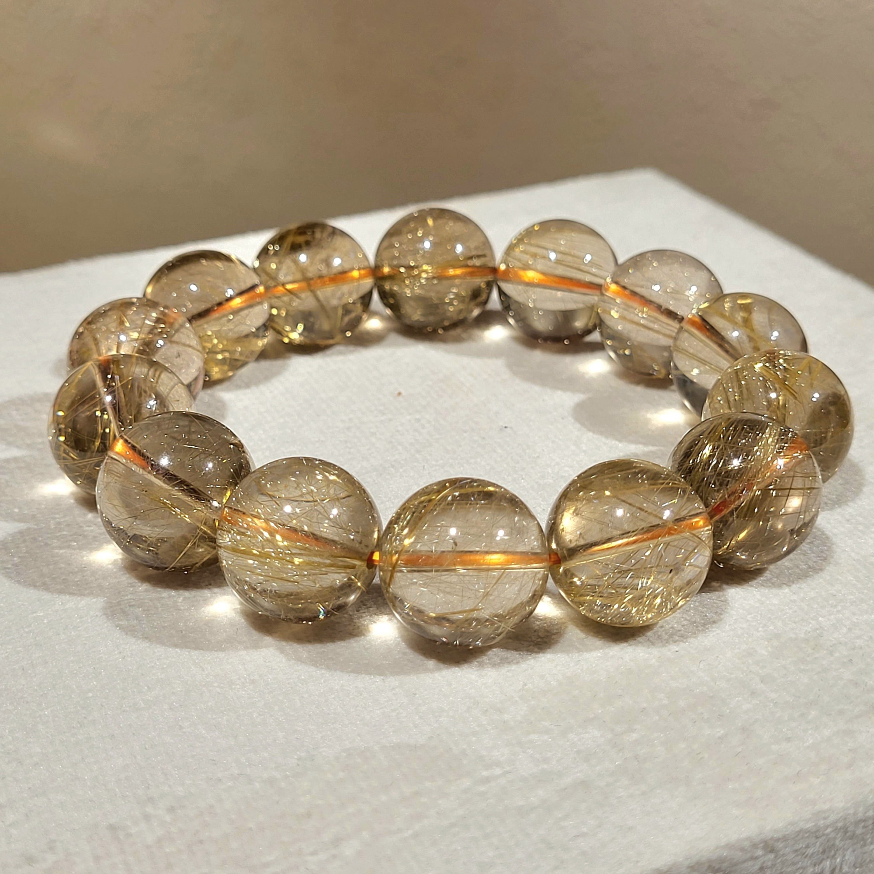 ⭐對應人體輪穴的太陽輪,有益於佩戴者的腸胃健康。除此之外,金髮晶手鍊還有益於佩戴者肝、十二指腸、胰臟、橫膈膜、膽等的健康