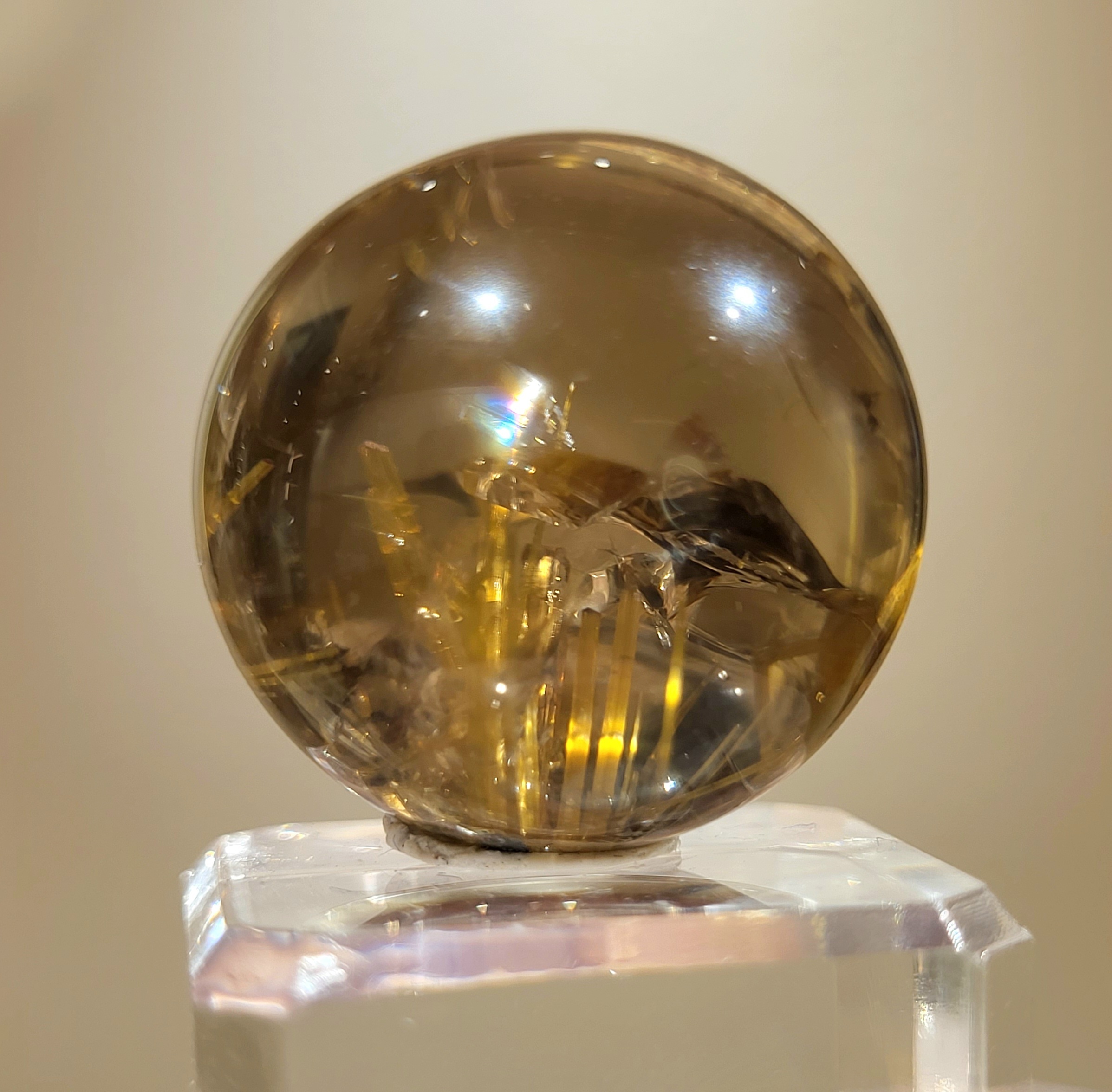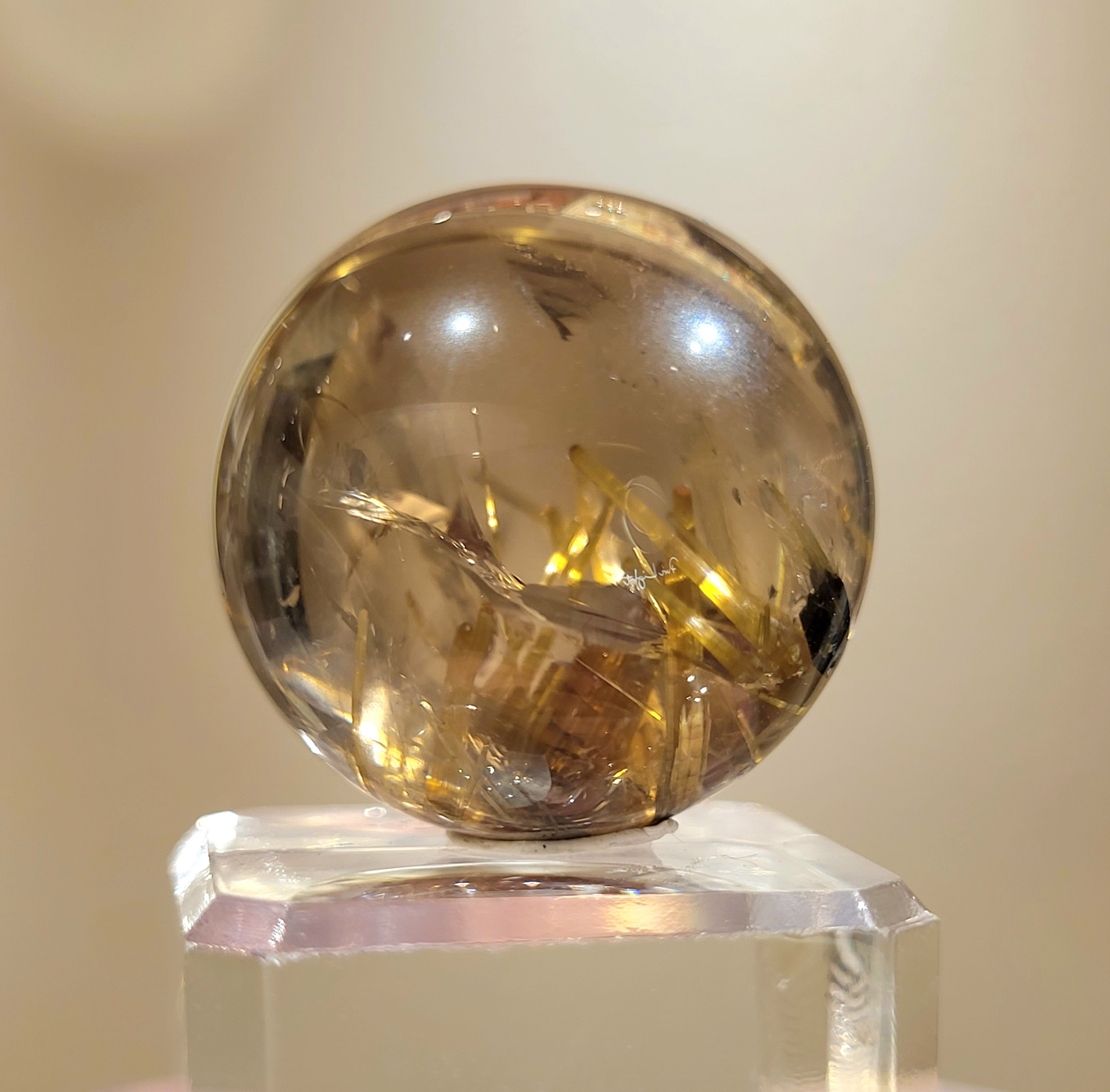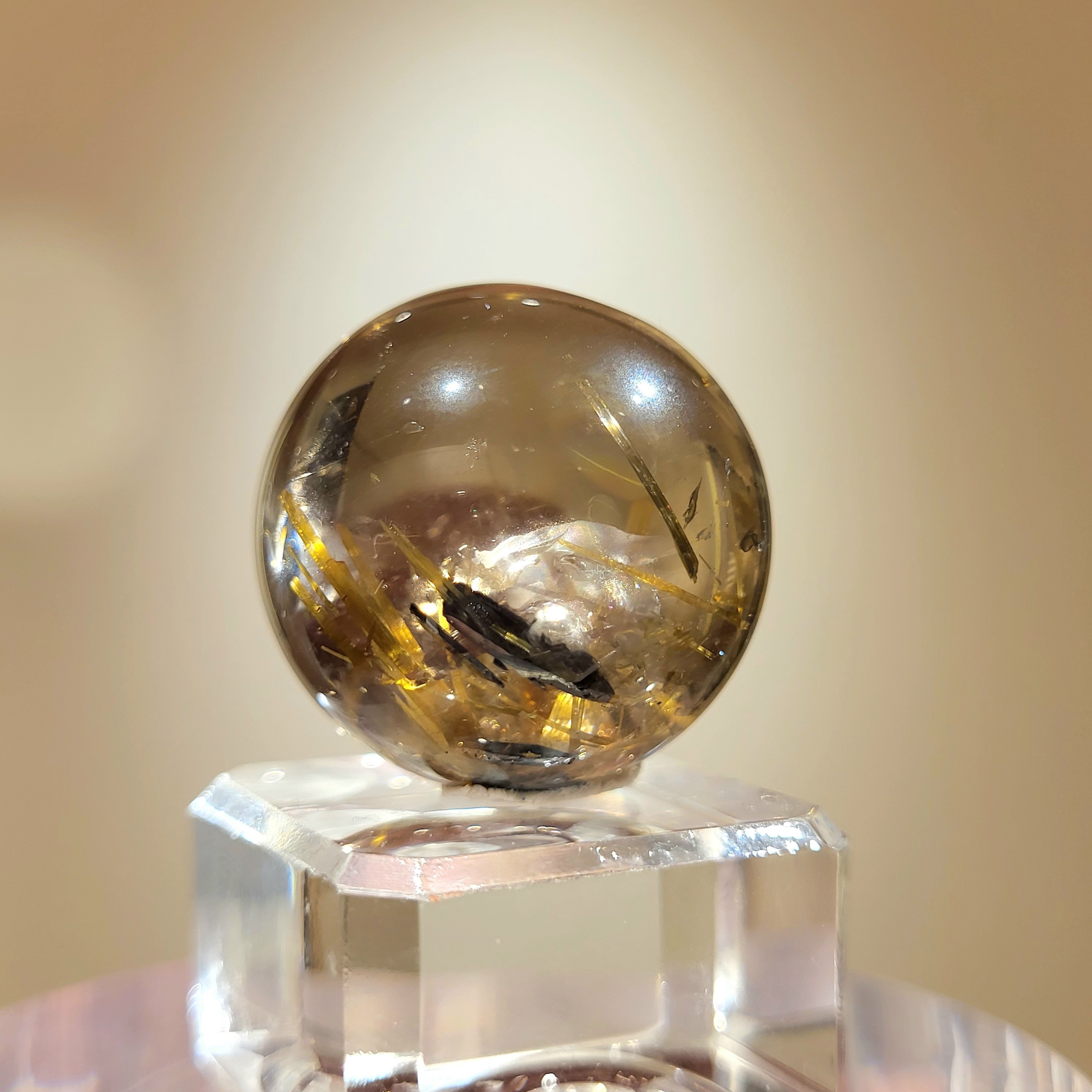 稀有茶晶底鈦晶花球 23.3mm
