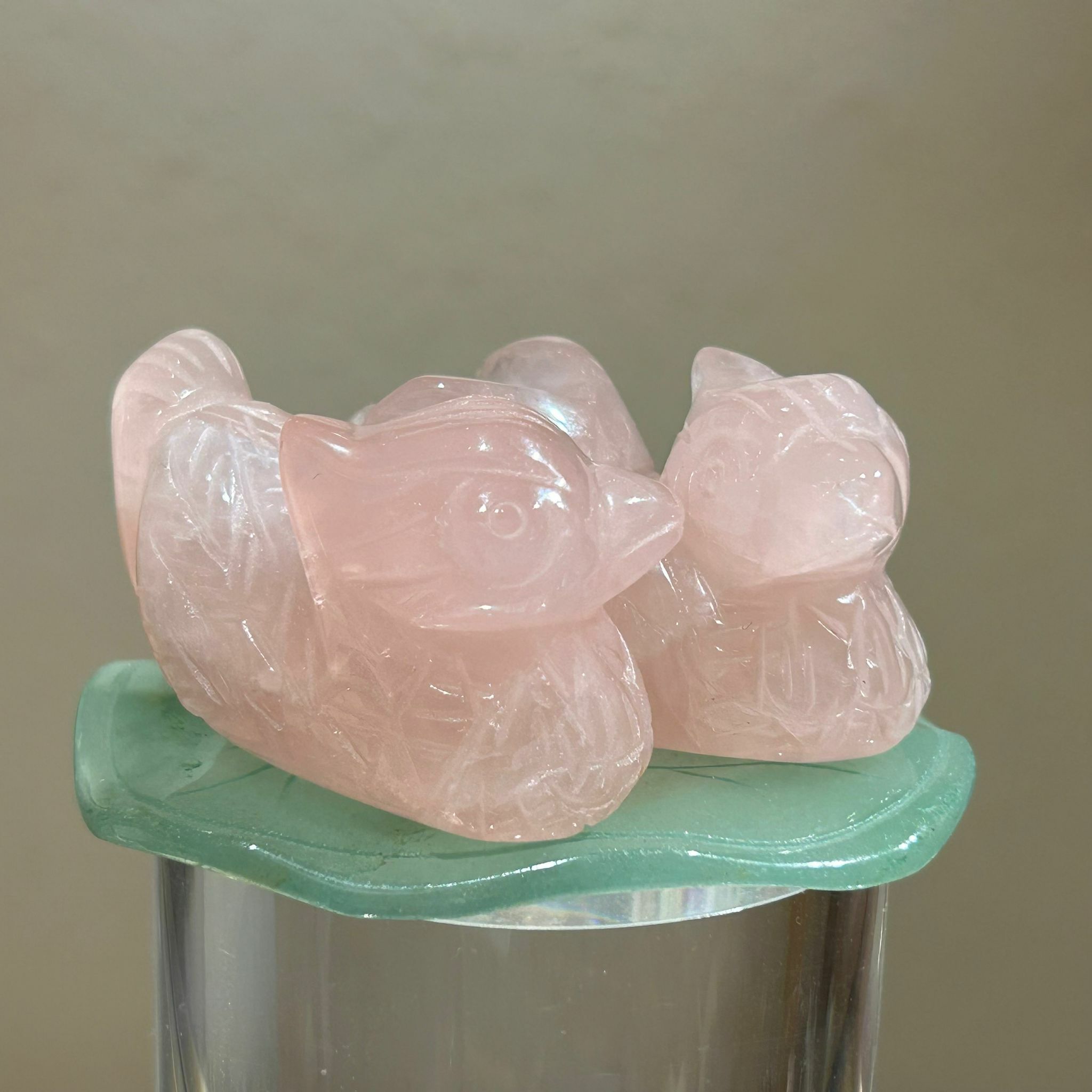 粉晶鴛鴦一對連荷葉